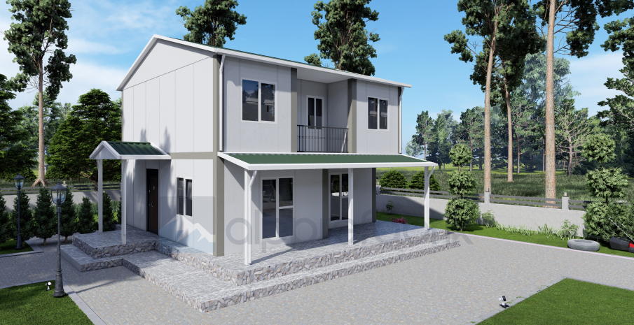 131м² двуетажна сглобяема къща предлага просторни жилищни зони и множество стаи за големи семейства. Идеална е за комфортен и престижен живот.
