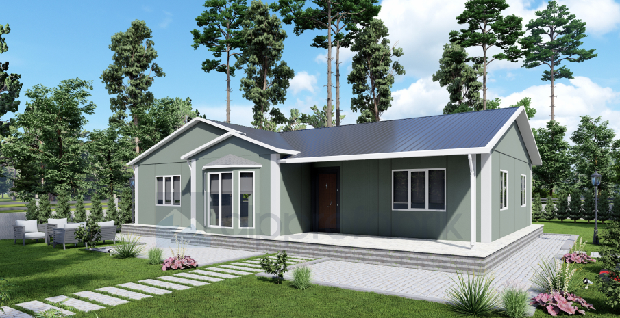 132м² едноетажна сглобяема къща е нашият луксозен модел, предлагащ максимално жилищно пространство на едно ниво. Подходяща е и за достъп за хора с увреждания.