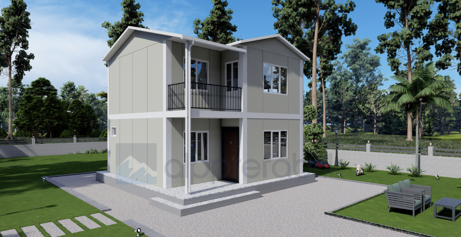 82м² двуетажна сглобяема къща предлага повече пространство с концепцията на вертикален живот. Тя е перфектна за тези, които искат да получат максимално жилищно пространство на малки парцели.